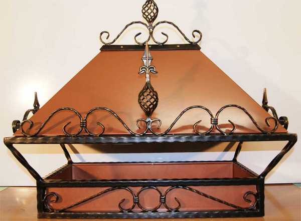 - Декоративную. Кованые элементы зонтика весьма облагораживают внешний вид здания, независимо от того, идет ли речь о бане или загородном доме.